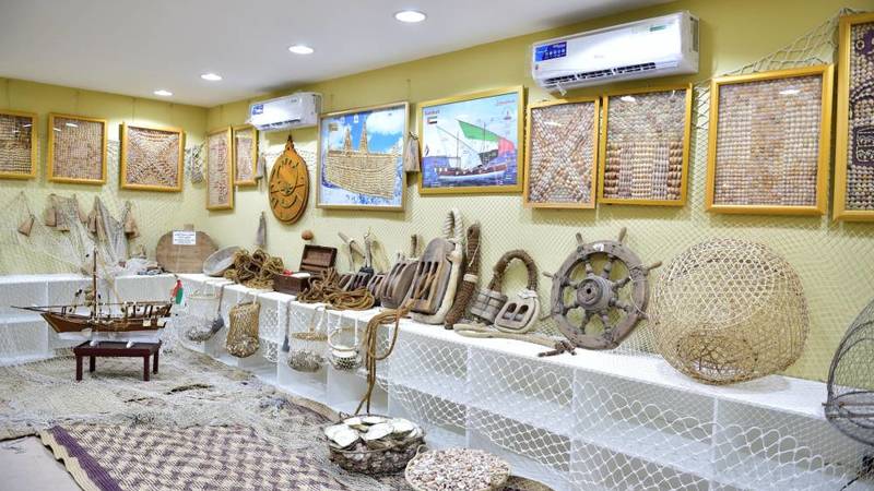 أما القواقع البحرية ولوحاتها، فتأخذ مساحة بارزة من جدران جناح الجمعية التي تفرد منشوراتها لصور القواقع ولوحاتها صفحات ملونة، تبرز الجماليات وأخاديد الألوان والزخارف الطبيعية التي تتماوج على ظهور القواقع، ما شجع بعض منتسبيها على اتخاذ الأصداف الملونة مادة لإنتاج لوحات تغري عدسات الكاميرات بتصويرها. ومما تحافظ عليه جمعية ابن ماجد أيضاً صناعة شباك الصيد، فكل من يطل على جناحها يصادف حرفيين ينسجون الشباك، وخلف ظهورهم ينتصب القرقور الخاص بالصيد، مصنوعاً من خامتين مختلفتين: سعف النخيل والأسلاك، وبينهما زمن ممتد من الغناء للبحر.