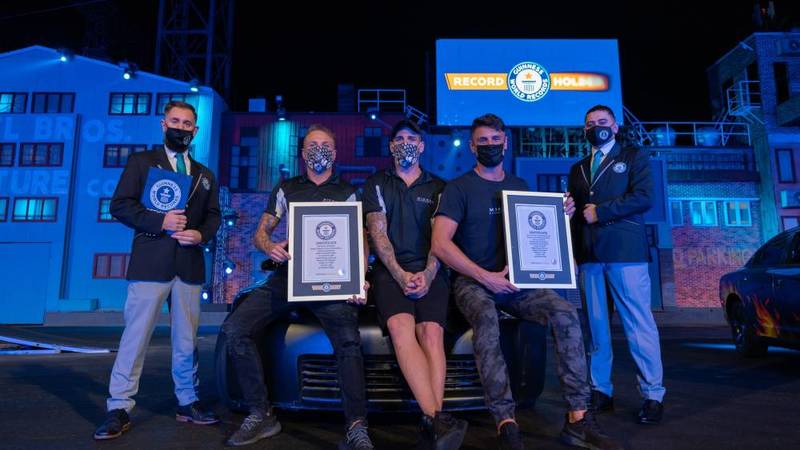 وتمكن كريستيان دياز جراسيا، من قيادته للسيارة على عجلتين، وكيفين موتشال، من الالتفاف بسيارة حول الأولى، وسط ترقّب كبير بين الحضور. كما نجح أندريا بونتيشيل في تحقيق لقب أكبر عدد من اللفات المتتالية في سيارة على سطح مبلل، بعد أن نجح في محاولته الأولى من الالتفاف 62 مرة وسط تشجيع من الزوار.