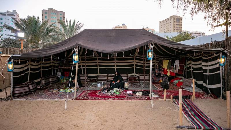 يستقبل البدوي ضيوفه ويقيم مجالسه في «بيت الشَّعر» الذي يمتد أمامه بساط من الرمل، وكل رشفة قهوة في بيت الشعر تمنح الضيف شعوراً بنعمة الظل في قيظ النهار، وكل ليل في البادية فسحة لمسامرة النجوم، لأن الأفق مفتوح لا يحجبه سقف، أو جدار. وبمتعلقات شخصية قليلة يمكن أن تمضي الحياة في البادية؛ ناقة، وثلاث أغنام، وبئر ماء، وكيس من الطحين، وآخر من البلح، ووعاء للحليب، وقربة ماء، وقهوة برائحة الهيل. لكن العين لا ترى كل شيء، فتلك ليست وحدها مقومات العيش في البيئة البدوية، لأن ما لا يرى أكثر مما تلتقطه عدسات الهواتف والكاميرات، فهناك الكرم والشجاعة والفطنة والصبر والوفاء والحب. هكذا تحولت مساحة من قلب الشارقة إلى قطعة حية من مضارب البادية، لتقدم صورة عن البيئة البدوية في الإمارات، ضمن بانوراما الحياة في البيئات المتجاورة، الدالة على تنوع وغنى في الوجدان لا ينبغي التفريط به، أو نسيانه، لأن العيش في اللحظة الراهنة فقط، يفتقد المعنى عندما لا يكون للأمس وجود في الذاكرة الجمعية، ولذلك رفعت «أيام الشارقة التراثية» شعار «التراث الثقافي يجمعنا».