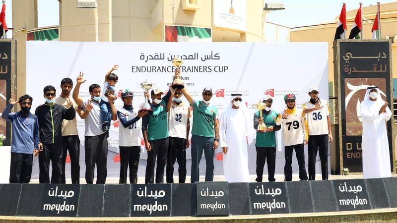 وعقب انتهاء المنافسات قام اللواء خبير محمد عيسى العضب، عضو مجلس إدارة نادي دبي للفروسية مدير عام النادي، والدكتور غانم الهاجري الأمين العام لاتحاد الإمارات للفروسية والسباق بتتويج الفائزين.