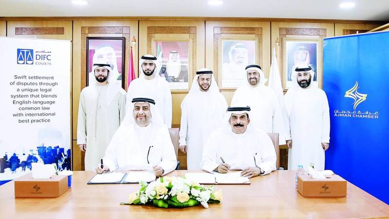 وقع مذكرة التفاهم في مقر «غرفة عجمان» عبدالله سعيد النعيمي عضو مجلس إدارة غرفة عجمان، والقاضي عمر جمعة المهيري، نائب رئيس محاكم مركز دبي المالي العالمي.