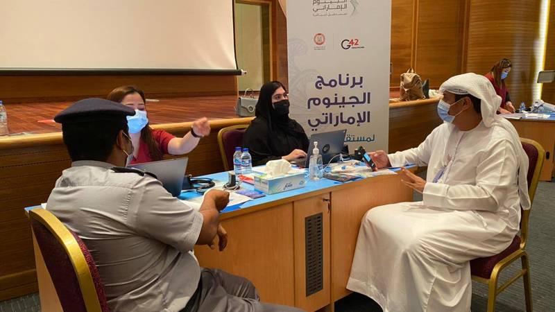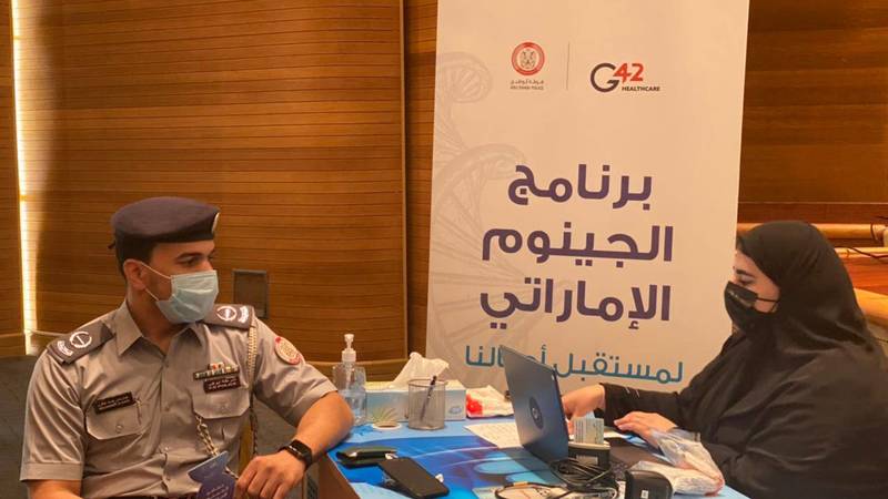 شارك منتسبو شرطة أبوظبي في مشروع برنامج الجينوم الإماراتي تحت شعار «لمستقبل أجيالنا» والذي تنفذه دائرة الصحة، وبتنظيم من إدارة الخدمات الطبية بشرطة أبوظبي، وبالتعاون مع البرنامج الوطني التطوعي للاستجابة لحالات الطوارئ «ساند» ضمن جهود الدولة في رسم الخارطة الجينية المرجعية لمواطني الإمارات والتعرف إلى الأمراض الوراثية والصفات الجينية لديهم وتطوير الخدمة الصحية ووضع خطة علاجية ووقائية للمجتمع بناء على نتائج التحليل الجيني للمواطنين.