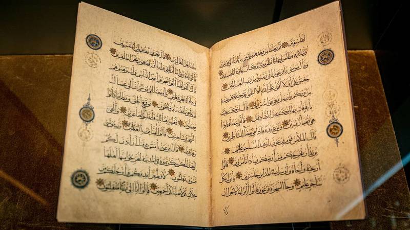 ويكشف الجناح عوالم وموضوعات شغلت الكثير من الباحثين والدارسين المتخصصين في الفنون الإسلاميّة، فيعرض نسخة عثمانية نادرة من القرآن الكريم يعود عمرها إلى 1827 ميلادي، إلا أن قيمة هذه النسخة ليس عمرها أو الفترة التي تعبر عنها فقط، وإنما في يد الخطاط التي كتبتها، فهي واحدة من نسخ القرآن الحكيم القليلة التي خطتها نساء فنانات، إذ جاءت بخط شريفة زليخا خاتمي السعدي بنت الحاج عبدي زاده بصاري ياري.