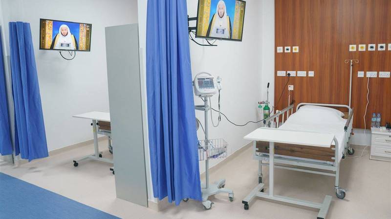 ويضم المستشفى 204 أسرّة، منها 48 مخصصاً للعناية المركزة، و156 للحالات المتوسطة والشديدة.