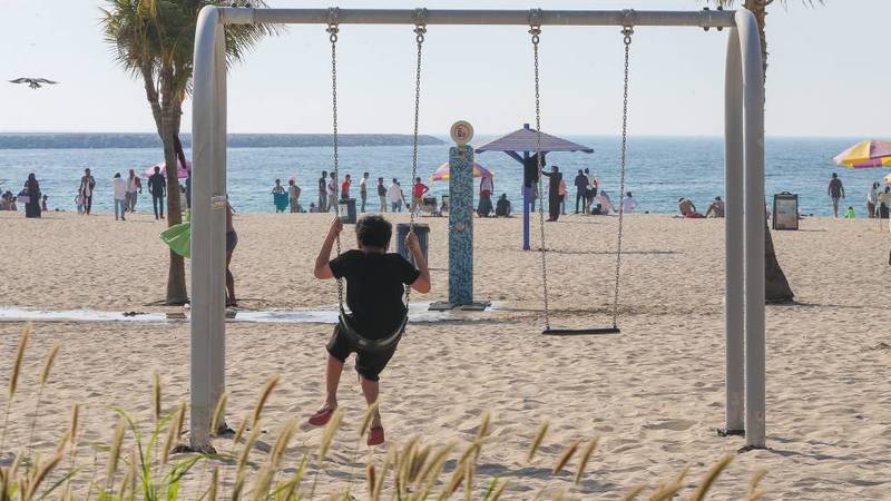 اليوم الاول بعيد الفطر في حديقة وشاطئ الممزر بدبي /تصوير: محمد شعلان