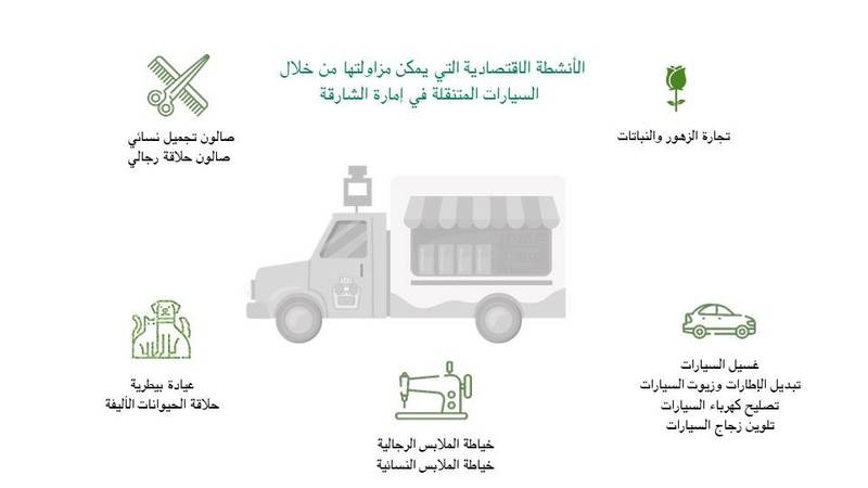 وجاء قرار المجلس التنفيذي في الشارقة رقم 11 لسنة 2021م بشأن تنظيم مزاولة الأنشطة الاقتصادية من خلال السيارات المتنقلة في إمارة الشارقة، بهدف إيجاد آلية لفتح نوافذ جديدة لعمليات البيع وتقديم الخدمة، وتحفيز الحركة الاقتصادية في الشارقة.
