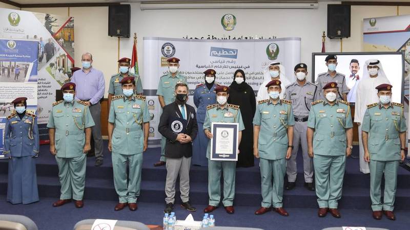 دخلت القيادة العامة لشرطة عجمان، موسوعة «جينيس» للأرقام القياسية، بعد تحطيمها رقماً قياسيا لـ303 أشخاص من 31 جنسية، في فيديو متواصل عبر الإنترنت يستخدمون «جهاز لاسلكي» بلغات متعددة، لشكر خط الدفاع الأول بجميع مؤسساته والقيادة العامة لشرطة عجمان، لجهودهم في مكافحة انتشار وباء «كورونا»، تماشياً مع نهج الدولة في التعايش والتسامح بين جميع من يعيش على أرضها.