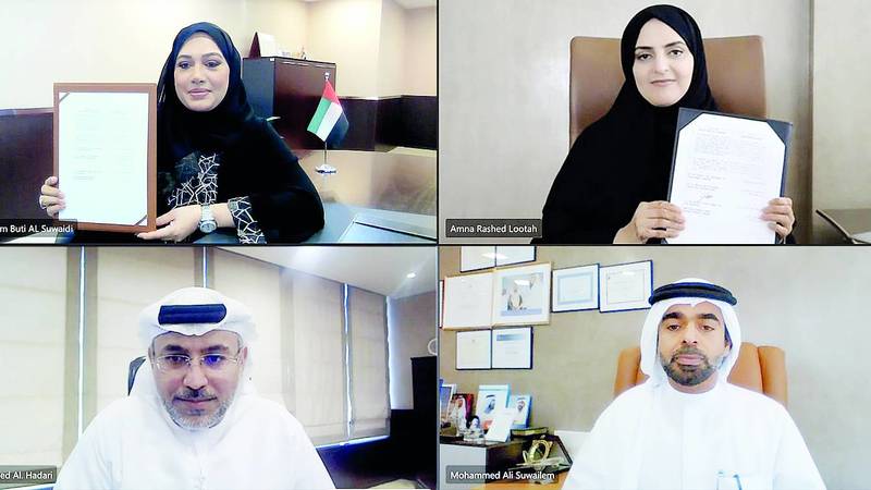 وقّع الاتفاقية كلّ من الدكتورة مريم السويدي الرئيسة التنفيذية لهيئة الأوراق المالية والسلع بالإنابة، وآمنة لوتاه مساعدة مدير عام سلطة المنطقة الحرة في مطار دبي «دافزا».