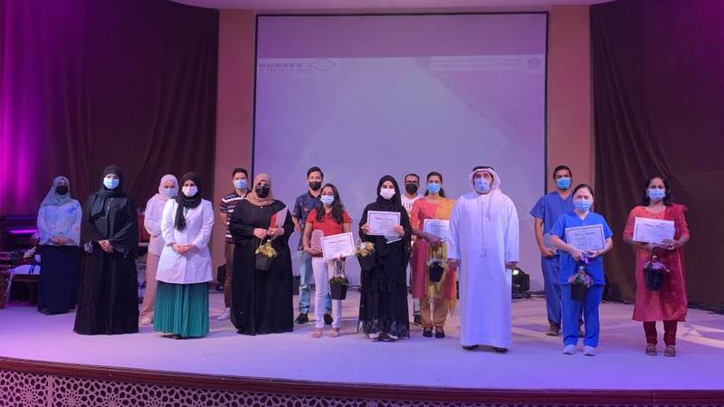 وتضمن حفل التكريم عرض فيديو (رحلة التحدي) الذي يعكس جهود الممرضين والممرضات أثناء جائحة «كورونا»، وكذلك عرض فيديو بعنوان: «يوم أطباء الأسرة العالمي»، ثم قام حمد تريم الشامسي، والدكتورة فاطمة المرزوقي، وجيهان سالم بتكريم الممرضين والممرضات.