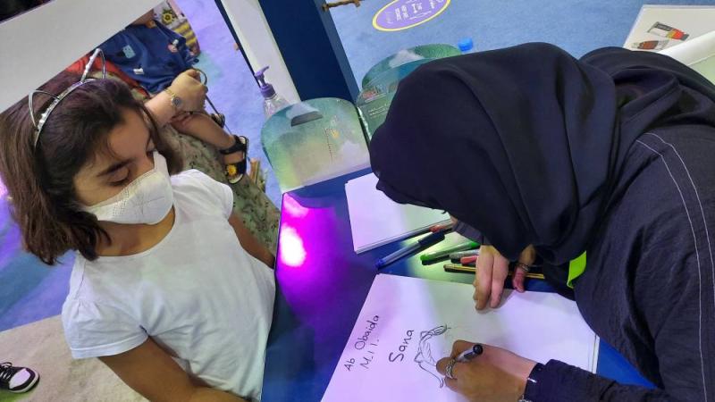 في طابور طويل وقفت العديد من الأسر بصحبة صغارها، تنتظر دورها أمام ركن المجلس الإماراتي لكتب اليافعين، ضمن مهرجان الشارقة القرائي للطفل، والذي يضم العديد من التجارب الترفيهية المبتكرة للطفل تحت شعار «تنمية لخيالهم ودعماً لأحلامهم»، منها زاوية لقراءة الكتب والقصص، وتجربة خاصة لنقل المعرض الافتراضي.