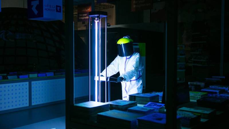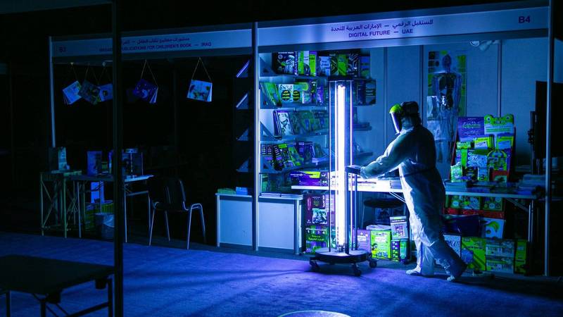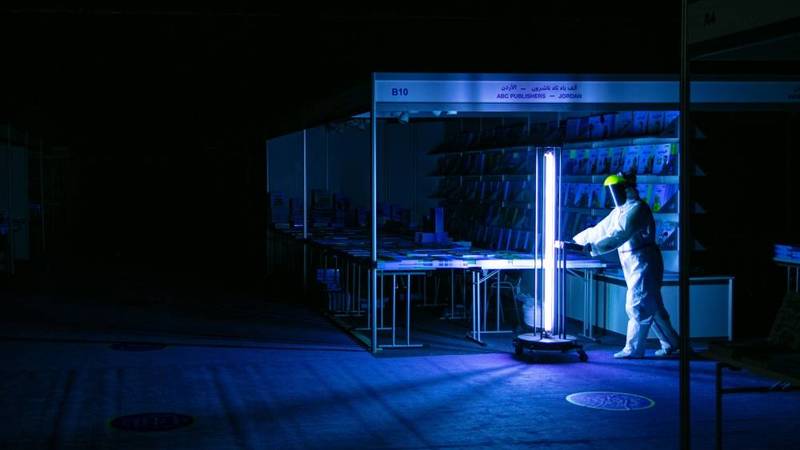 وما أن تُغلق أبواب المهرجان حتى تبدأ فرق التعقيم في عملها، مستخدمة أجهزة ذكية تعمل بالأشعة فوق البنفسجية، تمرّ على كافة المرافق بداية من الممرات وصولاً إلى رفوف دور النشر بشكل كامل، حيث تبدأ الأجهزة بتعقيم جميع الكتب الموجودة على رفوف دور النشر، فيما تنتقل وبشكل منتظم إلى الردهات والقاعات المخصصة للمهرجان. وإضافة إلى ذلك يعمل في المهرجان مجموعة كبيرة من المتطوعين الذين يقفون على مداخل ومخارج الحدث ليرشدوا الزوّار للالتزام بمختلف الإجراءات الاحترازية، بدءاً من الالتزام بارتداء الأقنعة، واتخاذ مسافات التباعد وغيرها، كما يتوافّر في كلّ ركن وزاوية من الحدث معقمات تعمل بشكل أوتوماتيكي وتعبأ على مدار الساعة، إلى جانب الماسحات الحرارية الموجودة على مداخل المهرجان.