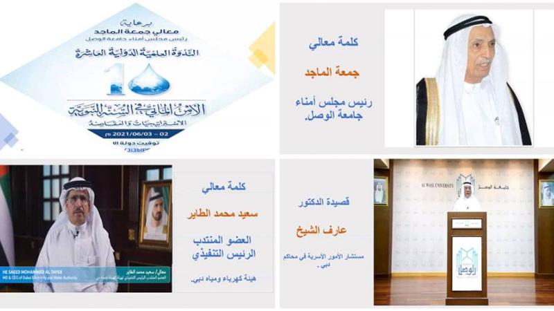 أكد سعيد محمد الطاير، العضو المنتدب الرئيس التنفيذي لهيئة كهرباء ومياه دبي، أن دبي لديها رؤية شاملة لاستدامة موارد المياه في إطار الاستراتيجية المتكاملة لإدارة الموارد المائية في دبي 2030 والتي تركز على تعزيز الموارد المائية، وترشيد الاستهلاك، واستخدام أحدث التقنيات والحلول المبتكرة. جاء ذلك خلال الكلمة الافتتاحية التي ألقاها في الندوة الدولية العاشرة للحديث الشريف التي نظمتها جامعة الوصل، عن بعد، بعنوان «الأمن المائي في السنّة النبوية.. المقاصد والاستراتيجيات»، تحت رعاية جمعة الماجد، رئيس مجلس أمناء جامعة الوصل، وبحضور الدكتور محمد أحمد عبدالرحمن مدير الجامعة، وعدد من الباحثين والمختصين وأساتذة الجامعة وطلبتها.