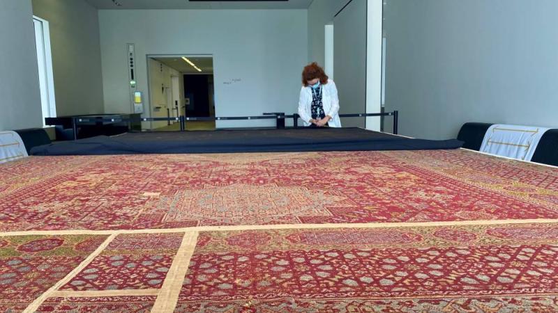 ويتمكّن زوار «اللوفر أبوظبي» حتى 24 الجاري، من مشاهدة فريق المتحف وهو يعمل على الحفاظ على «بساط بثلاث رصائع» مباشرة في قاعات العرض. البساط من إنتاج ورش عمل البلاط في العهد المملوكي (1250- 1517) في القاهرة، وهو مصنوع من الصوف. وخضع البساط لعميات قصّ وتقليص طوله على مدى السنين، وبعد ذلك جمعت رقع منه وأعيد ترتيبها وحياكتها، مما زاد من هشاشة البساط. لذا يضع فريق العمل المختص بالحفاظ على المنسوجات في المتحف البساط على دعامة صلبة جديدة، مما يساعد على توزيع وزنه والتقليل من ضغط الوزن. وهذه الدعامة ستطيل عمر البساط وتسهم في الحفاظ عليه بأفضل حال ممكنة.