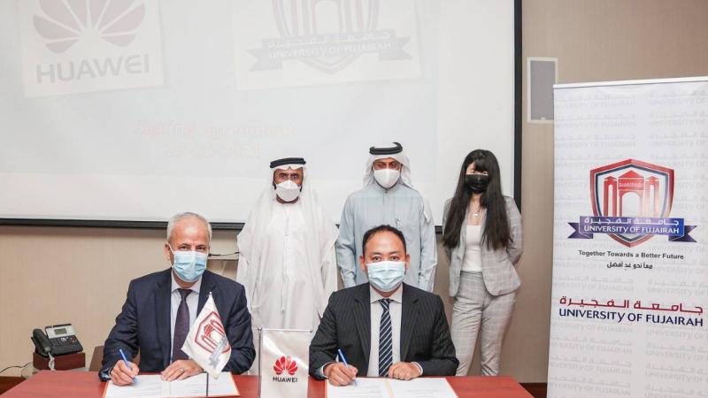 وقعت جامعة الفجيرة الأحد، اتفاقية تعاون مع شركة «هواوي» برعاية وحضور سعيد الرقباني، رئيس مجلس أمناء الجامعة، حيث وقع الاتفاقية عن الجامعة مديرها الدكتور سامح غوانمة، وسبيس لي، نائب رئيس الشركة، بحضور ممثلين عن الطرفين.