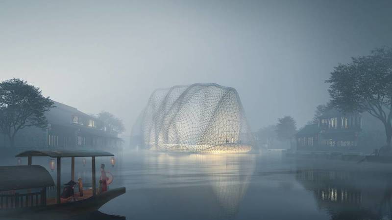 يقدم معرض «هدوء غامر» الكوخ، أو المنسك، كنموذج أولي يُظهر الجوانب الروحانية الخفية في العمارة اليابانية، باستلهام تجربة شاعر القرن الثالث عشر كامو نو تشومي الذي تنسّك بعد تعرّضه لكارثة طبيعية وحربٍ ضروس، وانزوى إلى كوخٍ صغيرٍ آيل للسقوط نقله إلى ضفاف نهر كامو، وقد منحه هذا الملاذ المتنقّل مكاناً هادئاً للتأمل ونيل السكينة، وبرغم كونه مساحة معزولة عن العالم الخارجي، إنما هي متّصلة بالبيئة المحيطة من خلال إدراك تشومي الحسي، وبهذا فإن المعرض يرتكز إلى ثيمتين رئيسيتين هما: السكينة والاتصال.وتتضمن قائمة الأعمال الفنية في المعرض نماذج نحتية تستكشف المفاهيم التجريبية والأعمال التركيبية المكانية والأدائية متعددة الوسائط، إلى جانب اللوحات والصور الفوتوغرافية ونماذج مصغّرة للمشاريع المعمارية، التي يقدمها مجموعة من المعماريين الناشئين والمكرسين هم: كوجي فوجي، توجو مورانو، سوتيمي هوريغوتشي، تويو إيتو، كازويو سيجيما، جونيا إيشيغامي، أونيشيماكي وهياكوديوكي للعمارة، شينغو ماسودا وكاتسوهيسا أوتسوبو، بالإضافة إلى عمل تركيبي وعرض أدائي للفنان نايل كوتينغ يستمر على مدار يوم كامل، ويحاكي فيه ظروف الكوارث الطبيعية مثل الحرائق والزلازل والفيضانات وتأثيرات النيازك.