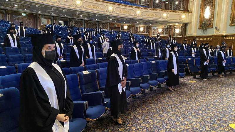 وقد جرى تقسيم الخريجات على ثلاثة احتفالات على مدار ثلاثة أيام (الاثنين - الثلاثاء - الأربعاء)، وتم توزيع الخريجات على أربع مجموعات متتالية في كل يوم، وذلك ضمن مقتضيات تطبيق الإجراءات والتدابير الاحترازية التي وضعتها الجامعة لهذه الاحتفالات للوقاية من فيروس (كوفيد ــ 19).