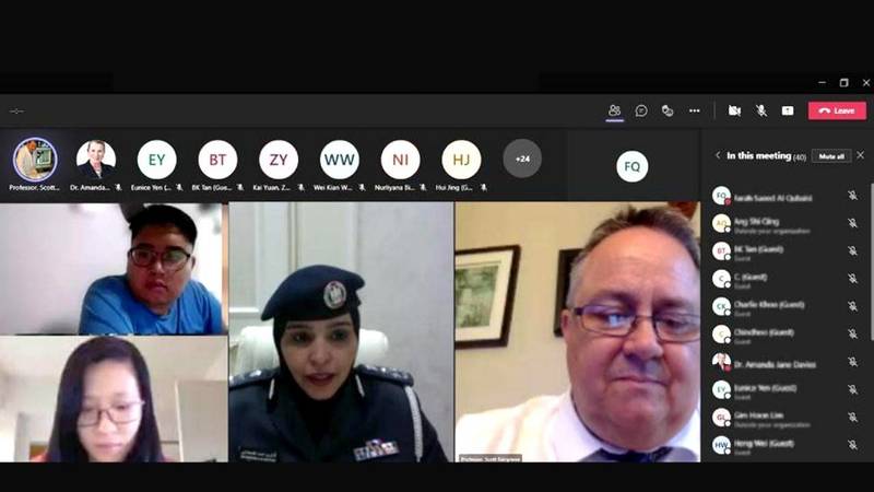 شاركت شرطة أبوظبي في دورة تدريبية افتراضية للشرطة السنغافورية نظمتها أكاديمية ربدان بعنوان «تحقيقات الوفاة.. الأدلة الجنائية في مسرح الجريمة» ضمن التنسيق والتعاون وتبادل الخبرات مع الشرطة السنغافورية.