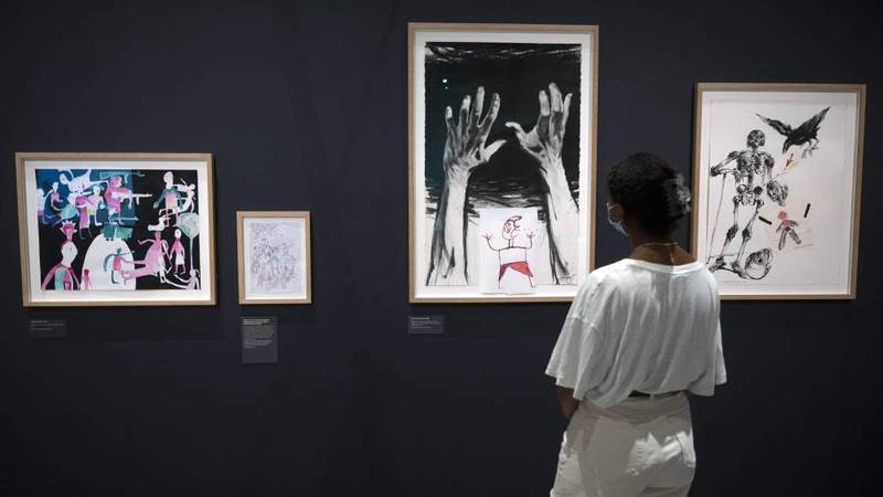 في الجزء الخلفي من قاعة المعرض، يرتفع صوت يجذب الزوار. إنه صوت فرانسواز إيريتييه، عالمة الأعراق والأنثروبولوجيا التي توفيت عام 2017، وهي تفكك في مقطع فيديو رموز رسم ملون ودقيق بشكل مدهش، حصلت عليه المنظمة غير الحكومية «ويدجينج بيس». وفي هذا الرسم دبابات ومركبات مزوّدة بمدافع رشاشة وأكواخ تقصفها الطائرات ورجل مقطوع الرأس على الأرض. وستبقى هذه الأعمال معروضة في مرسيليا إلى نهاية أغسطس/آب المقبل.