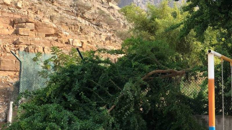 وأشار سعيد الظهوري، صاحب ومؤسس قرية الشيخ محمد بن راشد التراثية في واي شعم، شمالا، إلى جريان الوادي، فيما صاحب الأمطار، التي استمرت نحو نصف ساعة، هبوب رياح شديدة، أدت إلى تكسير غصون بعض الأشجار والإطاحة ببعضها الآخر.
