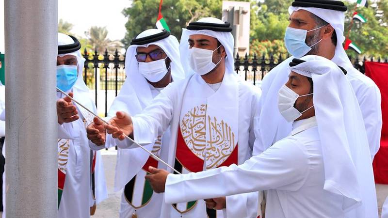 في مشهد وطني بهيج، وبحضور كوكبة من أساتذة الجامعة وإدارييها وطلابها وطالباتها، يتقدمهم الدكتور عواد الخلف القائم بأعمال مدير الجامعة، اعتزازاً برفع العلم الشامخ أمام مقر الجامعة القاسمية في الشارقة، أكدت الجامعة القاسمية، في مشاركتها الدائمة بهذه المناسبة، كل معاني الحب والوفاء والانتماء والولاء للإمارات.