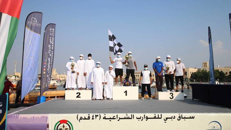 وعقب نهاية السباق، قام محمد عبدالله حارب المدير التنفيذي لنادي دبي الدولي للرياضات البحرية، يرافقه المقدم علي عبدالله القصيب النقبي رئيس قسم الإنقاذ البحري في شرطة دبي بتقديم الكؤوس إلى نواخذة وبحارة القوارب الحاصلة على المراكز الثلاثة الأولى.