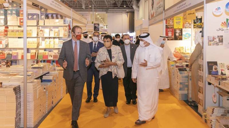 استقبل أحمد بن ركاض العامري، رئيس هيئة الشارقة للكتاب، خلال المعرض، الدكتورة كارلا هايدن رئيسة مكتبة الكونجرس الأمريكية، ورافقها في جولة على قاعات المعرض، اطلعت خلالها على حجم مشاركة الناشرين، والمؤسسات الثقافية الأمريكية.