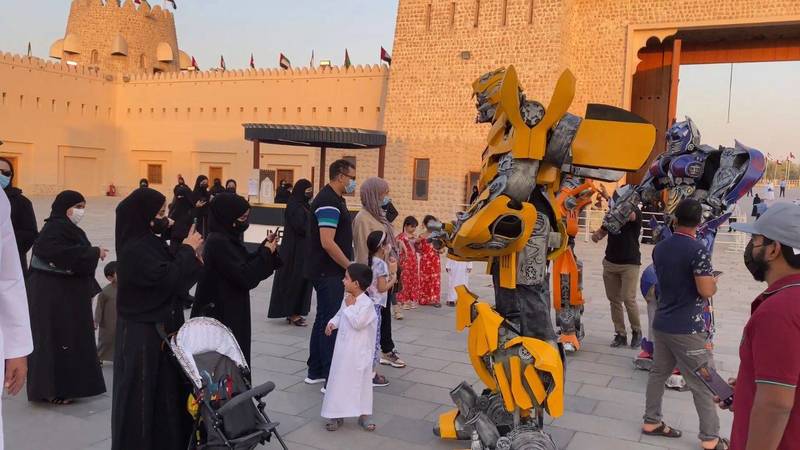 وقدمت عدد من الفرق الوطنية، منها فرقة سالم مصبح المقبالي، عروضاً فنية ليلية لفن الرزفة الحربية بمشاركة العديد من المواطنين، والتي لاقت إقبالاً كبيراً من الزوار للتعرف إلى العادات والتقاليد والفنون الإماراتية في أجواء تراثية تبرز تقاليد وعادات وثقافة الدول حول العالم.