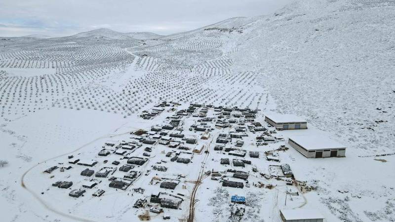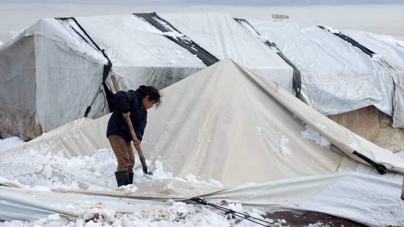 ولقي طفل واحد، على الأقل، حتفه في سوريا بعد أن غطت عاصفة مخيمات للنازحين بالثلوج، صاحبها انخفاض حاد في درجات الحرارة لحد التجمد، ما فاقم من معاناة الآلاف من النازحين في الحرب السورية الدائرة منذ نحو عقد. وقال مكتب الأمم المتحدة لتنسيق الشؤون الإنسانية إن طفلاً توفي ودخلت أمه للعناية المركزة بعد أن تسببت الثلوج بانهيار الخيمة التي كانا يعيشان فيها، في منطقة قسطل مقداد، إثر عاصفة هبت على المنطقة في 18 يناير/ كانون الثاني. وأضاف المكتب أن طفلين آخرين يرقدان في المستشفى بسبب الصقيع.