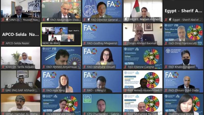 شاركت مريم بنت محمد المهيري، وزيرة التغير المناخي والبيئة، في جلسة وزارية رفيعة المستوى ضمن أعمال الدورة السادسة والثلاثين لمؤتمر منظمة الأغذية والزراعة للأمم المتحدة (الفاو) في الشرق الأدنى (NERC 36) والذي نظمته دولة العراق، تحت شعار «التعافي ومعاودة التشغيل: الابتكار من أجل نظم غذائية زراعية أفضل وأكثر اخضراراً وأكثر قدرة على الصمود لتحقيق أهداف التنمية المستدامة».