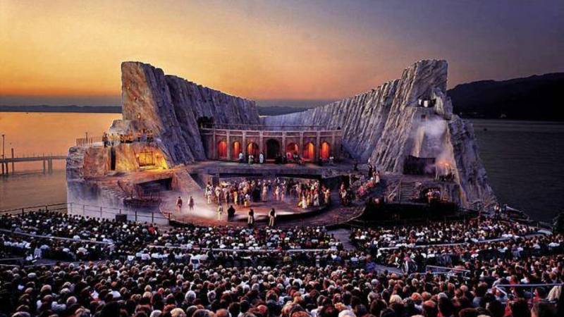 في وسط بحيرة «كونستانس» العائمة، أقيم مسرح عائم في مدينة بريجنز وهي عاصمة ولاية فورارلبرغ بدولة النمسا وتقع على الشواطئ الجنوبية الشرقية لبحيرة كونستانس، وهي من المدن الساحرة التي تحتوي على العديد من المعالم السياحية الرائعة، وهو من المسارح التي حاولت الخروج عن الشكل التقليدي على مستوى العروض الموسيقية والمسرحية، ويقام فيه كل عامين مهرجان شهير تشد إليه رحال الدراميين والموسيقيين كما يقدم عروضاً أوبرالية بمشاركات دولية واسعة، الأمر الذي أكسبه شهرة كبيرة على مستوى العالم، ويتميز بقدرة استيعابه للجمهور تصل إلى 7 آلاف شخص يجلسون على الشاطئ، بينما خشبة المسرح تكون عائمة في مياه دافئة، وتعتبر مدينة بريجنز إحدى أشهر المدن الثقافية على مستوى العالم.