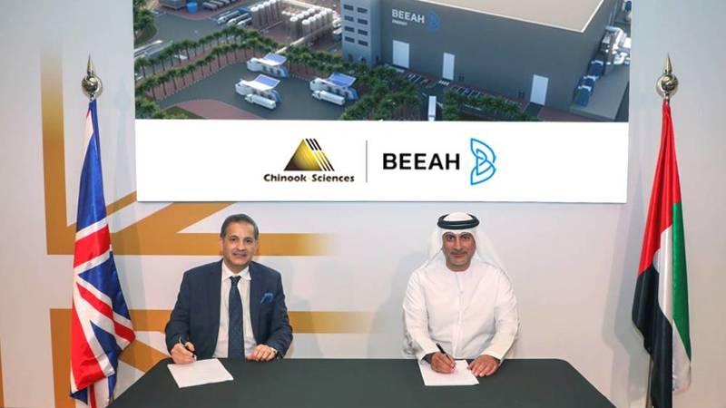 ومن جانبه، قال سيمون بيني، المفوض التجاري للمملكة المتحدة بالشرق الأوسط والقنصل العام للمملكة المتحدة في دبي: «إن الشراكة بين تشينوك ساينسيز و«بيئة للطاقة» لتطوير أول محطة في المنطقة لتحويل النفايات إلى هيدروجين، تعدّ نموذجاً رائعاً على الابتكار والطموح من قبل المملكة المتحدة ودولة الإمارات، ما يسهم في تعزيز النمو الاقتصادي المستدام للبلدين».