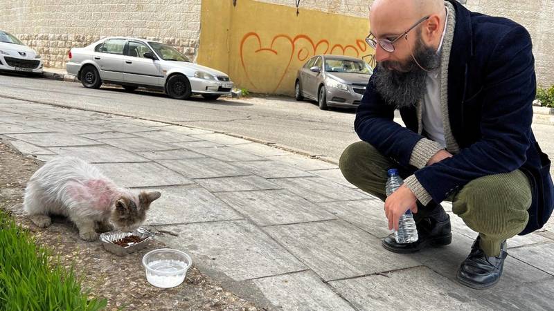 يحمل الأردني زيد الشوربجي كل يوم عبوات طعام صغيرة ويتجول بها في حيه في عمان القديمة، ليطعم قطط الشوارع.