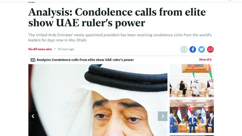 تواصل اهتمام الصحف ووسائل الإعلام العالمية بانتخاب صاحب السمو الشيخ محمد بن زايد آل نهيان، حفظه الله، رئيساً لدولة الإمارات العربية المتحدة، خلفاً للمغفور له بإذن الله الشيخ خليفة بن زايد، رحمه الله، حيث قال موقع ذا هيل: إن الرئيس الأمريكي جو بايدن أرسل وفداً رفيع المستوى وعلى رأسه كامالا هاريس، نائبة الرئيس، إلى دولة الإمارات لتقديم واجب العزاء وتهنئة صاحب السمو الشيخ محمد بن زايد، بغية تعزيز العلاقات بين البلدين.