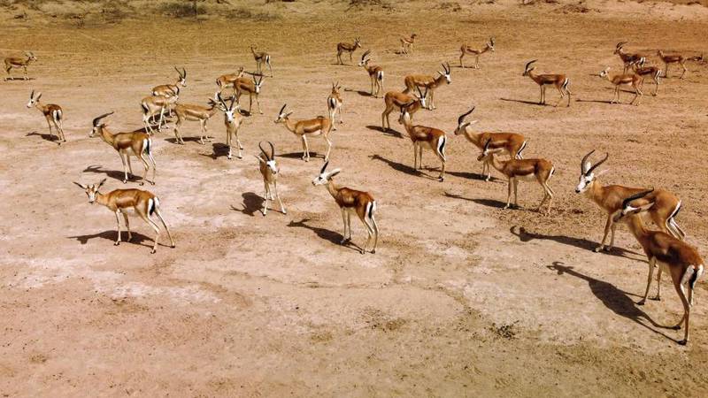 تبحث غزلان الريم المتبقية في محمية ساوة في جنوب العراق، عن شيء لتأكله، بعد هلاك لحق بها وأدى إلى انخفاض أعدادها من 148 إلى 87 رأساً في شهر واحد فقط إثر انقطاع موارد الغذاء عن هذه الحيوانات النادرة، والجفاف وغياب الدعم الحكومي.