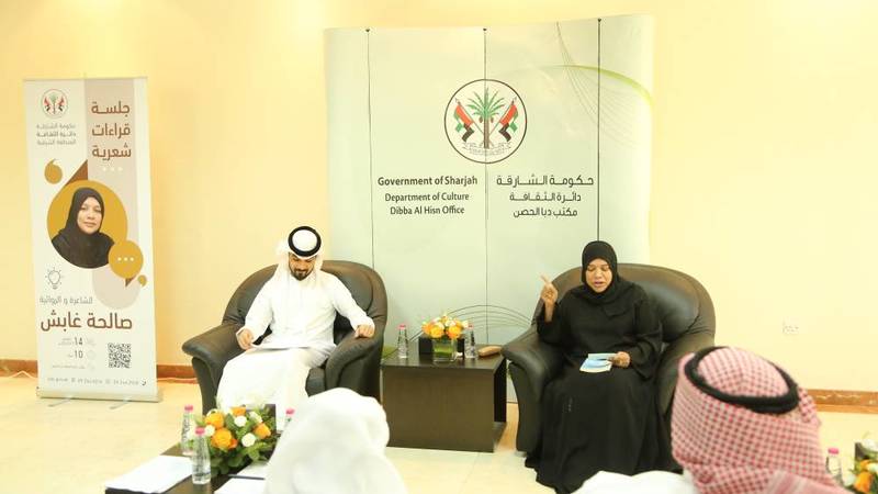 ضمن سلسلة البرامج الشهرية للمجالس الأدبية في المنطقة الشرقية نظم مكتب دائرة الثقافة بدبا الحصن التابع لدائرة الثقافة بالمنطقة الشرقية يوم أمس الخميس، جلسة قراءات شعرية للكاتبة الإماراتية صالحة غابش، وهي تعتبر من الأسماء التي برزت في مجال الشعر الفصيح والقصة القصيرة، فمن فتاة عشقت اللغة العربية إلى كاتبة مبدعة ومتميزة أسهمت في رفد الساحة الأدبية بنتاجات أدبية أثرت الوجدان وارتقت بذائقة القراء، وبالحديث عن بدايتها نالت غابش جائزة وزارة التربية والتعليم في الشعر الفصيح وهي ما تزال طالبة في المرحلة الثانوية آنذاك.