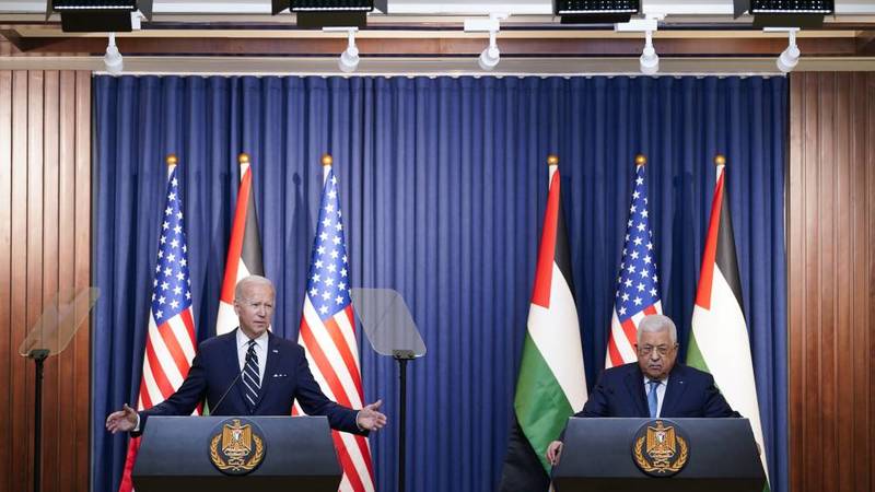 وجدد بايدن تأكيد دعمه لحل الدولتين للصراع المستمر منذ عقود، عندما التقى بالرئيس الفلسطيني محمود عباس، دون توقعات بحدوث أي انفراجة سياسية كبيرة.
