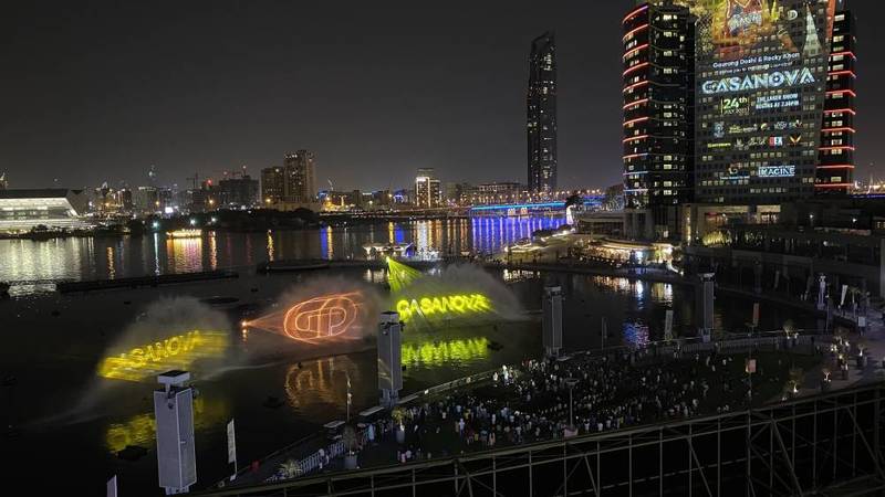 تضمن الاحتفال مفاجأة للجمهور، مع ظهور ممثل بوليوود الشهير فيفيك أوبيروي وحضوره لحفل الإطلاق، حيث افتتح العرض بالضغط على زر العد التنازلي الأحمر الذي قام بتشغيل النوافير وأضواء الليزر. وجاء حضور فيفيك دعماً لصديقه جورانج، حيث زاد حماس الجمهور أثناء الرقص لرؤية الفنان يتفاعل مع المنتجين وأفراد الجمهور. وسيتم تشغيل النافورة الراقصة على موسيقى كازانوفا مع عروض الرسومات ثلاث مرات يومياً على مبنى إنتركونتيننتال في دبي فيستفال سيتي طوال الشهر الجاري.