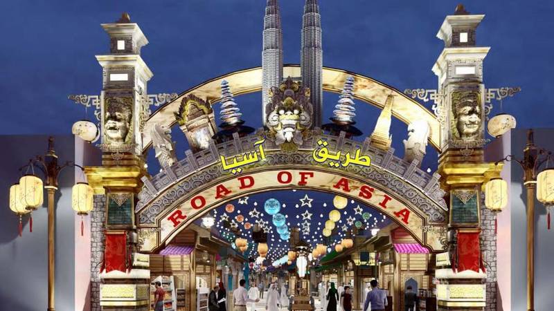 يضم مشروع «طريق آسيا» الجديد في موسم القرية العالمية السابع والعشرين، شارعاً جديداً للمشاة يحتوي على 43 كشكاً من 13 دولة آسيوية غير ممثلة في الأجنحة الـ27 المشاركة. وستقدم كل من هذه المنافذ لضيوفها منتجات أصلية 100% من سريلانكا، وإندونيسيا، وكمبوديا، وماليزيا، وبروناي، ولاوس، وهونغ كونغ، وتايوان، وفيتنام، ونيبال، وبوتان، وميانمار، والفلبين.