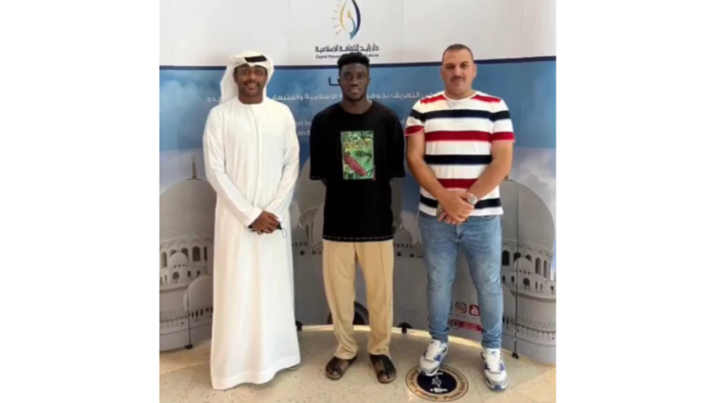 أشهر الغاني ريتشارد أكونور الذي يلعب في نادي الجزيرة كلاعب مقيم،إسلامه، بحضور حارس مرمى منتخب الإمارات و«فخر أبوظبي» علي خصيف.