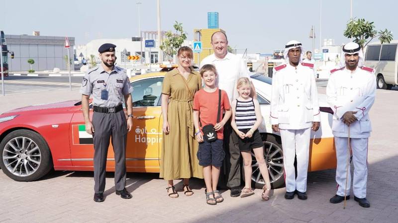 وقدمت دورية السعادة التابعة لمديرية المرور والدوريات، شرحاً وافياً للسياح عن مهامها وواجباتها وأهدافها، في تعزيز الإيجابية للسائقين ونشر السعادة.