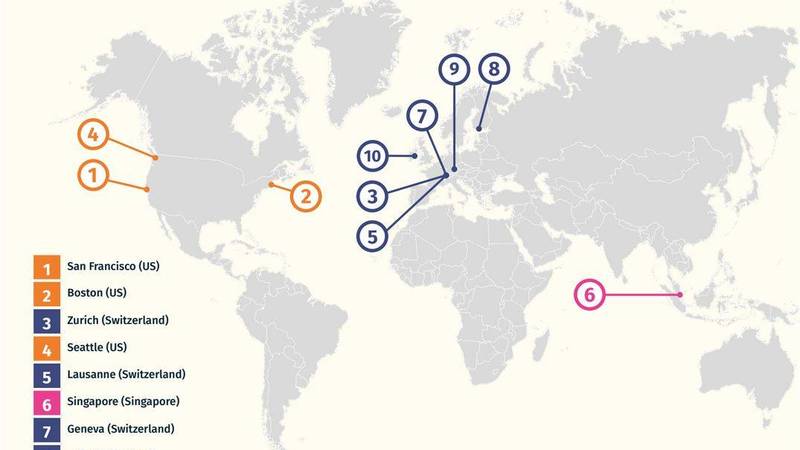 أما في ما يتعلق بالمدن، وللعام الثاني على التوالي، تبرز سان فرانسيسكو باعتبارها المدينة الأولى في العالم في مؤشر تنافسية المواهب العالمي، تليها بوسطن ومن ثم زيوريخ بعد أن ارتفعت كل منهما بمرتبة واحدة مقارنة مع العام الماضي. فيما كانت سنغافورة المدينة الآسيوية الوحيدة ضمن المراتب العشرين الأولى.