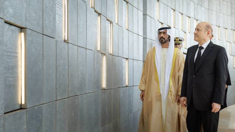 ولدى وصول الدكتور رشاد العليمي إلى واحة الكرامة، استعرض مع الشيخ خليفة بن طحنون آل نهيان مراسم حرس الشرف، ثم وضع إكليلا أمام نصب الشهيد الذي يتكون من 31 لوحاً يستند كل منها على الآخر، كرمز للوحدة والتكاتف والتضامن بين قيادة دولة الإمارات وشعبها وجنودها الأبطال.