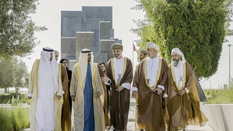 خليفة بن طحنون يستقبل رئيس مجلس الشورى العماني في واحة الكرامة