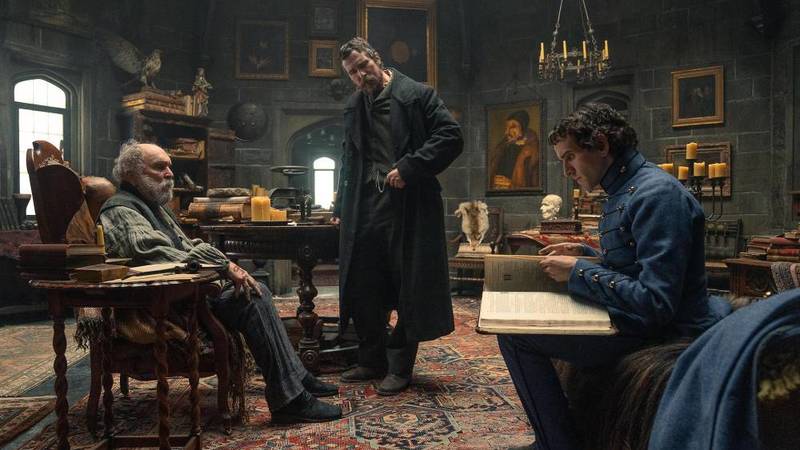 الفيلم الذي يجعلك تطرح الكثير من الأسئلة، ويثير فضولك لمعرفة المزيد عن تفاصيل قصته، من أين أتت؟ وهل هي مأخوذة عن قصة حقيقية؟ وطالما أن أحد أبطالها شخصية معروفة في الواقع، فهل هذا يعني أن الفيلم يحكي جانباً من حياته؟.. هو فيلم ناجح ومميز ومحبوك بحرفية عالية، لدرجة أنه يختلط على الجمهور التمييز بين الخيال والواقع، تصدقه لدرجة أنك لا تستبعد أن يكون حقيقياً، وشخصياته كلهم من لحم ودم، ولم يولدوا على الورق فقط. هكذا هو فيلم «العين الزرقاء الشاحبة» أو «ذا بيل بلو آي» الذي تعرضه منصة «نتفليكس»، يجذبك، يأسرك، يقنعك ويمتعك، فتكمل معه الرحلة لنحو ساعتين و8 دقائق، ويستمر يتفاعل بأحداثه في عقلك بعد انتهاء المشاهدة، وتسترجع بعض أهم مشاهده بمخيلتك، محاولاً لعب دور المحقق الذي يحلل كل تفصيلة ليفهم أكثر.