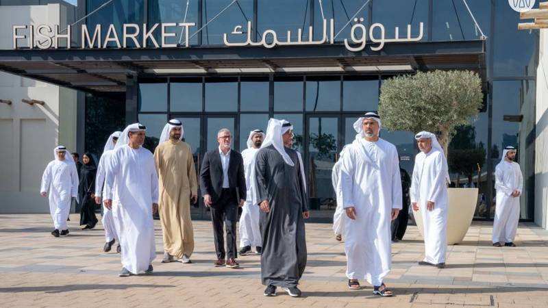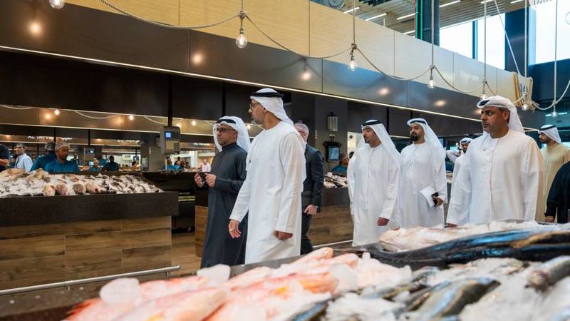 وخلال جولته في سوق السمك، الذي تم افتتاحه مؤخراً، تأكد سموه من التزام المشروع بتطبيق أعلى معايير البناء الحديثة، وتوفيره خدمات ومرافق عالمية المستوى تلبي تطلعات أصحاب المحال والصيادين والمتسوقين. واستمع سموّه أيضاً إلى شرح حول دمج تصاميم السوق الداخلية لنماذج فنية ترتبط بإرث مهنة صيد وتجارة الأسماك في أبوظبي، والحفاظ على الطابع التراثي الأصيل لسوق السمك في أبوظبي، الذي يعود تاريخه لما يزيد على أربعين عاماً.