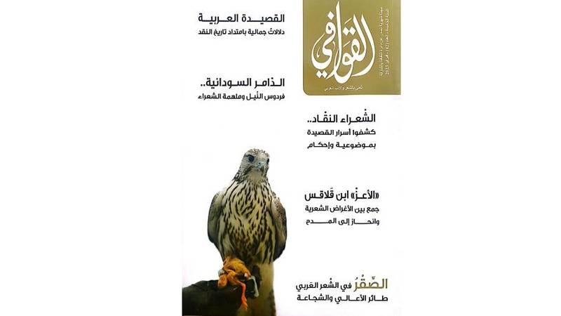 احتفى العدد الجديد من مجلة «القوافي» بالقصيدة العربية، وجاءت إطلالة العدد تحت عنوان: «القصيدة العربية.. دلالات جمالية بامتداد تاريخ النقد» وكتبها د. أحمد الحريشي.