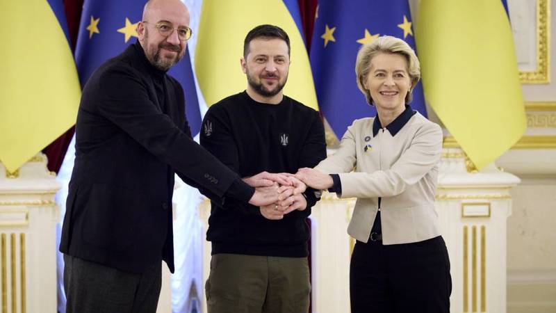 وقال ميشيل وزيلينسكي وفون دير لاين في بيان «الاتحاد الأوروبي سيدعم أوكرانيا والشعب الأوكراني في مواجهة حرب روسيا العدوانية المستمرة مهما تطلب الأمر».