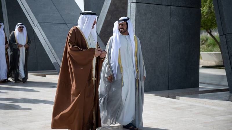 استقبل الشيخ خليفة بن طحنون آل نهيان، المدير التنفيذي لمكتب شؤون أسر الشهداء اليوم الأربعاء، في واحة الكرامة أحمد بن سلمان المسلم، رئيس مجلس النواب البحريني والوفد المرافق الذي يزور اللدولة رسمياً.