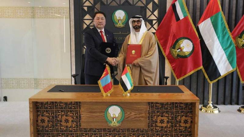 وقع محمد بن أحمد البواردي وزير الدولة لشؤون الدفاع، وسياخانبايار غورسيد وزير دفاع منغوليا، مذكرة تفاهم بشأن التعاون والتبادل الدفاعي، وذلك على هامش فعاليات الدورة السادسة عشرة لمعرض الدفاع الدولي «آيدكس 2023» والدورة السابعة لمعرض الدفاع البحري «نافدكس 2023».