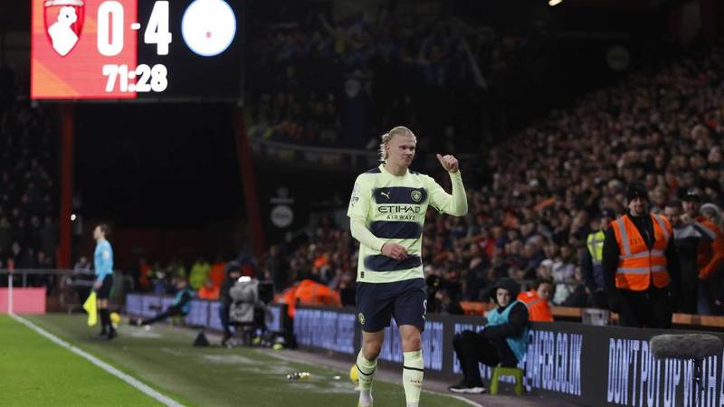 في بورنموث، تناوب على تسجيل أهداف سيتي الأرجنتيني خوليان ألفاريس (15)، النرويجي إرلينغ هالاند (29) الذي عزز صدارته لترتيب هدافي الدوري بهدفه الـ27 هذا الموسم، فيل فودن (45) والويلزي كريس ميفام خطأ في مرمى فريقه (51).